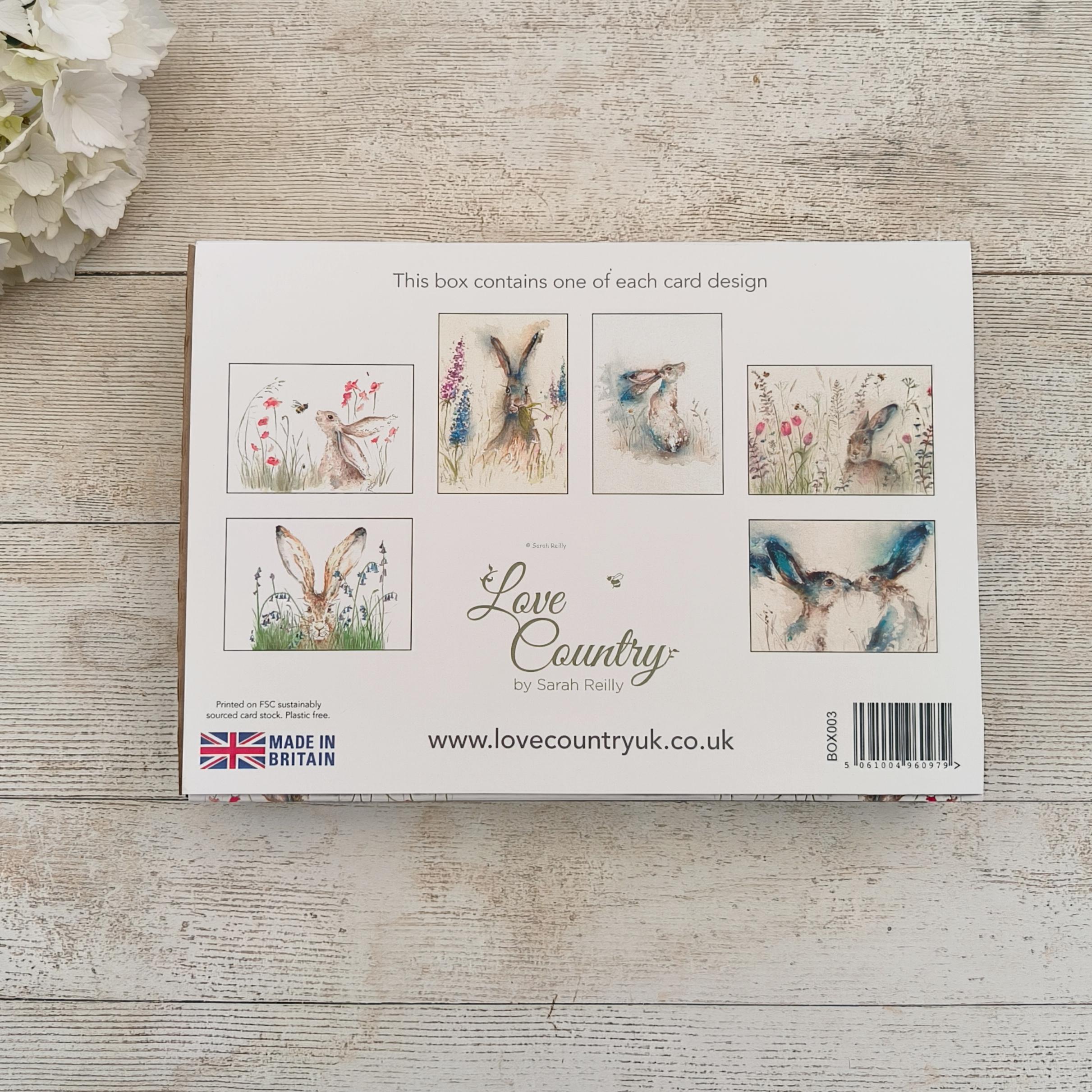 Tags boxed cards, card set, country cards, countrystyle stationery, greeting cards, hare cards, hare stationery, notecard set, notelets, stationery, wildlife cards