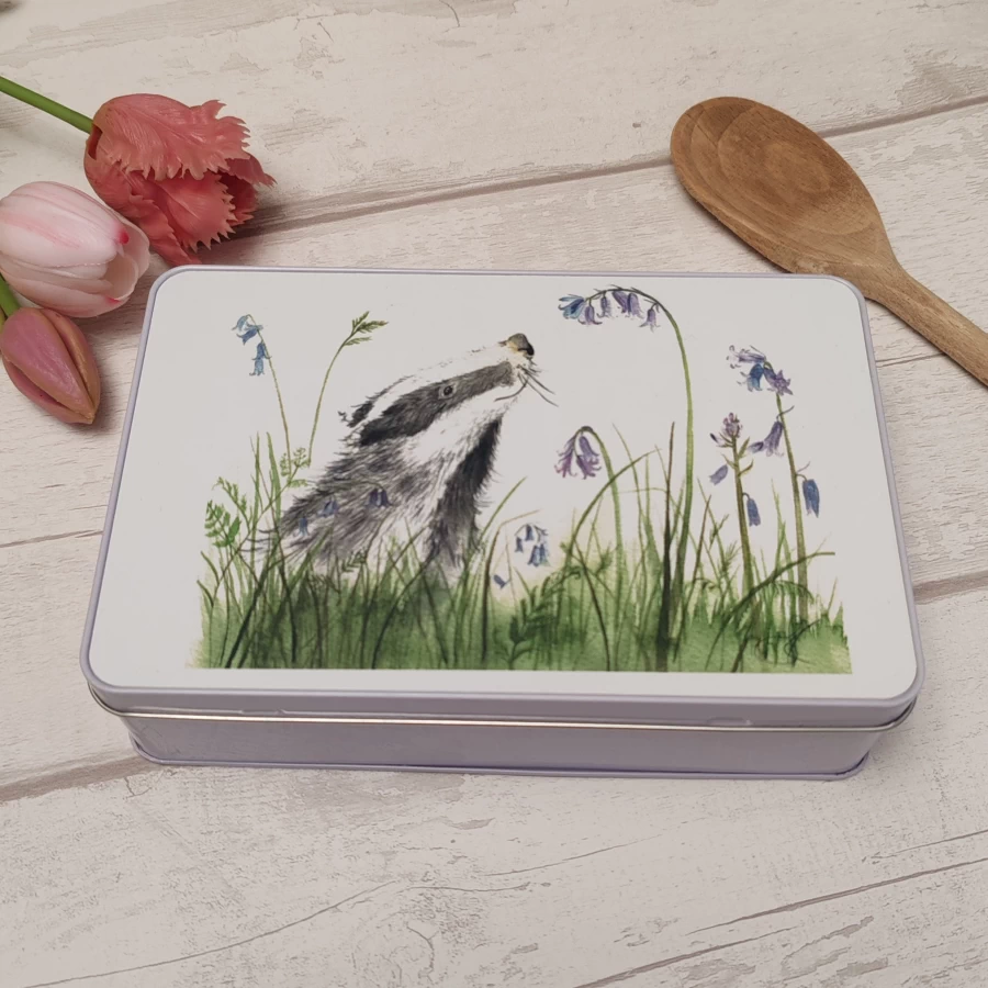 “Blissful Badger” Rectangle Cake/Biscuit Tin