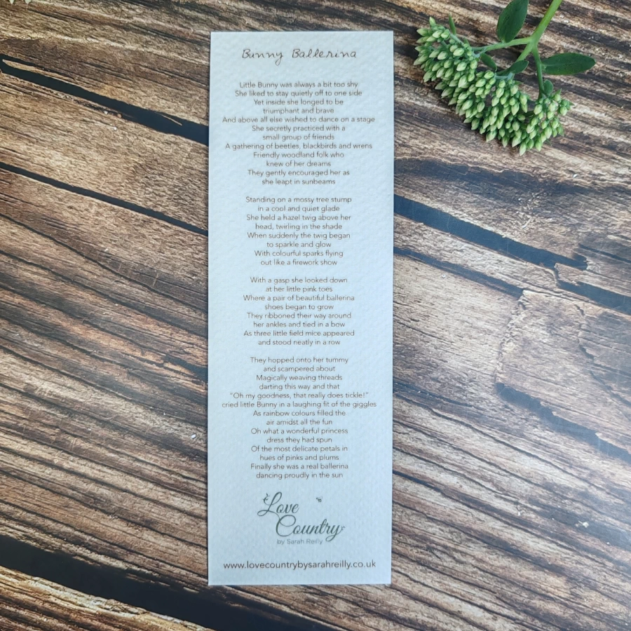 These beautifully illustrated bookmarks make the experience even more special. Printed on sturdy 350gsm textured watercolour paper, each one features a delightful poem or story written by the artist on the reverse.