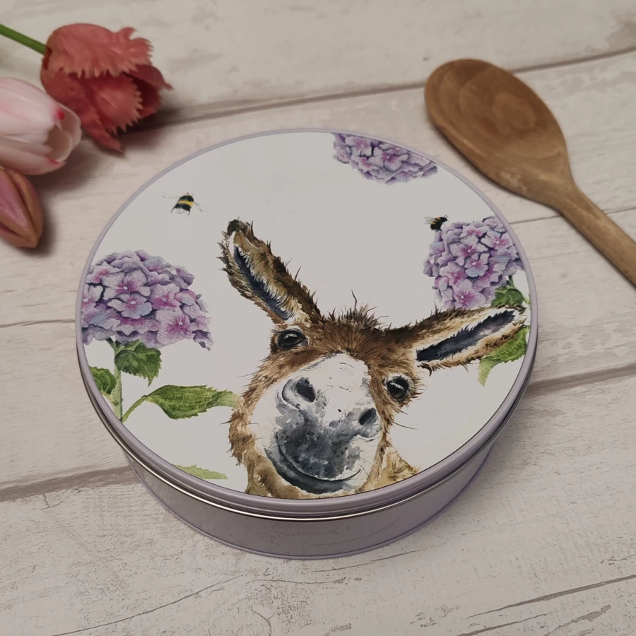 “Donkey and Hydrangea” Round Cake/Biscuit Tin