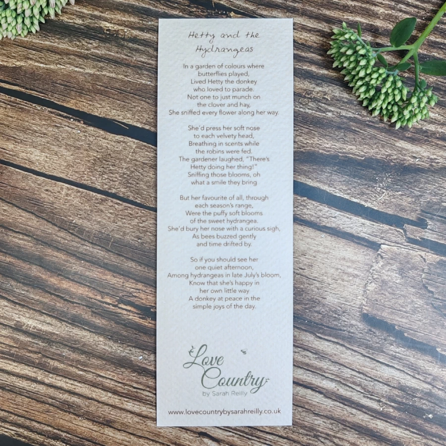 Donkey and Hydrangeas Bookmark
