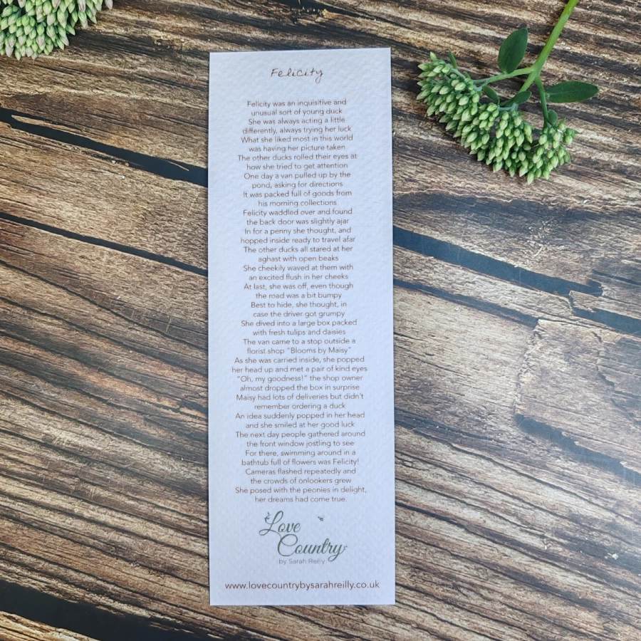 These beautifully illustrated bookmarks make the experience even more special. Printed on sturdy 350gsm textured watercolour paper, each one features a delightful poem or story written by the artist on the reverse.