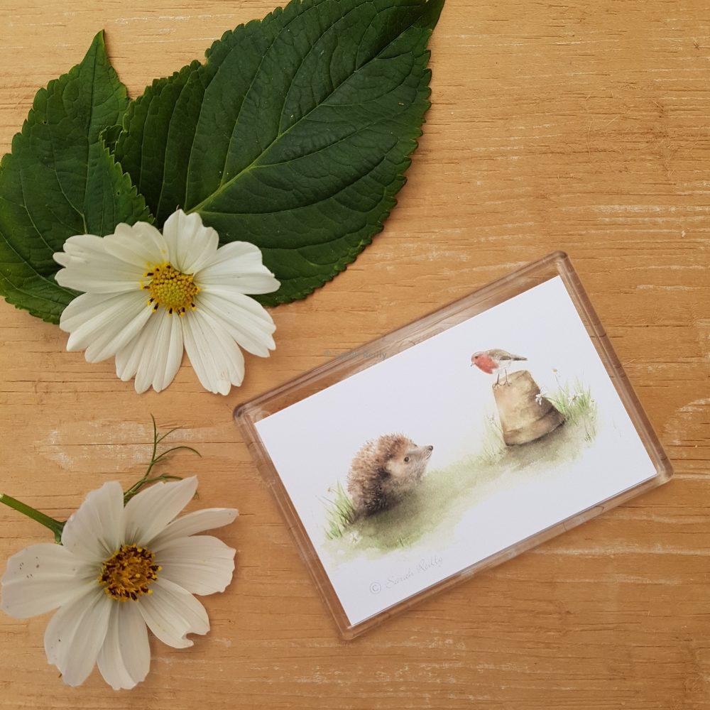 Looking for a small gift? These fridge magnets make charming little presents at only £2.50 each making them a terrific and affordable way to share a mini print of one of Sarah’s watercolours. They are also perfect to send with a Love Country Greeting Card too! Each magnet measures 9.5 x 6.5cm made from strong plastic and comes in a cellophane bag.
