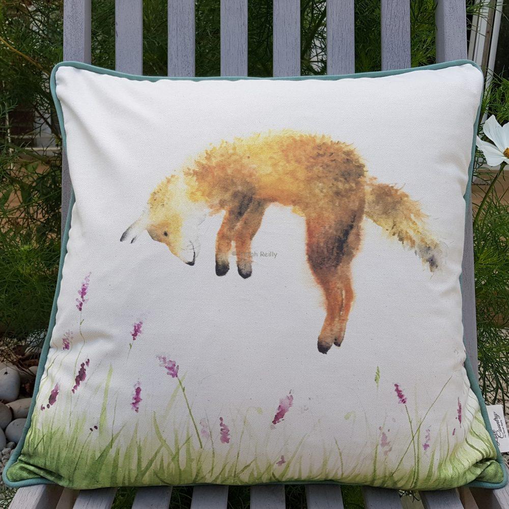 This charming little fox bouncing up high in the air enjoying his playtime.