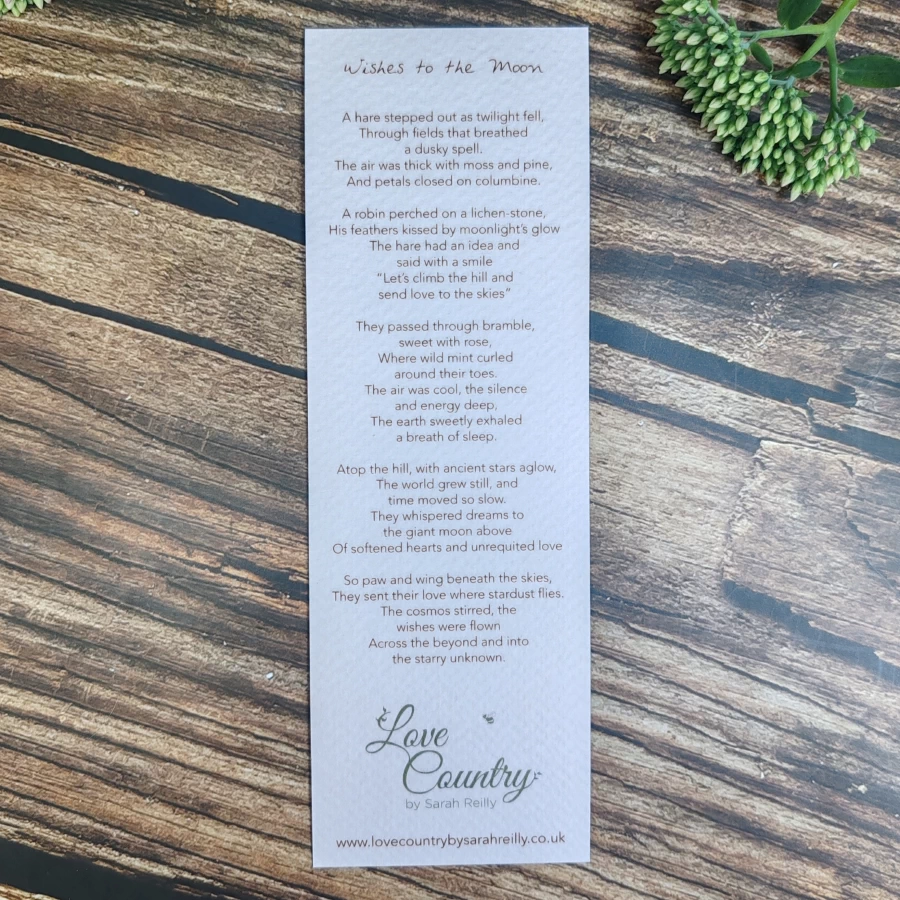 These beautifully illustrated bookmarks make the experience even more special. Printed on sturdy 350gsm textured watercolour paper, each one features a delightful poem or story written by the artist on the reverse.